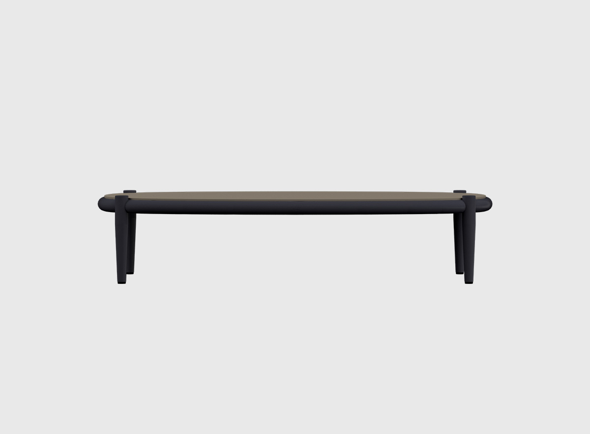Con su diseño amplio y refinado, la mesa de centro baja es la aliada perfecta para acompañar sofás y sillones en espacios exteriores. Su estructura de aluminio en tono carbón aporta resistencia y ligereza, mientras que la tapa porcelánica en acabado Griggio ofrece un aspecto elegante.