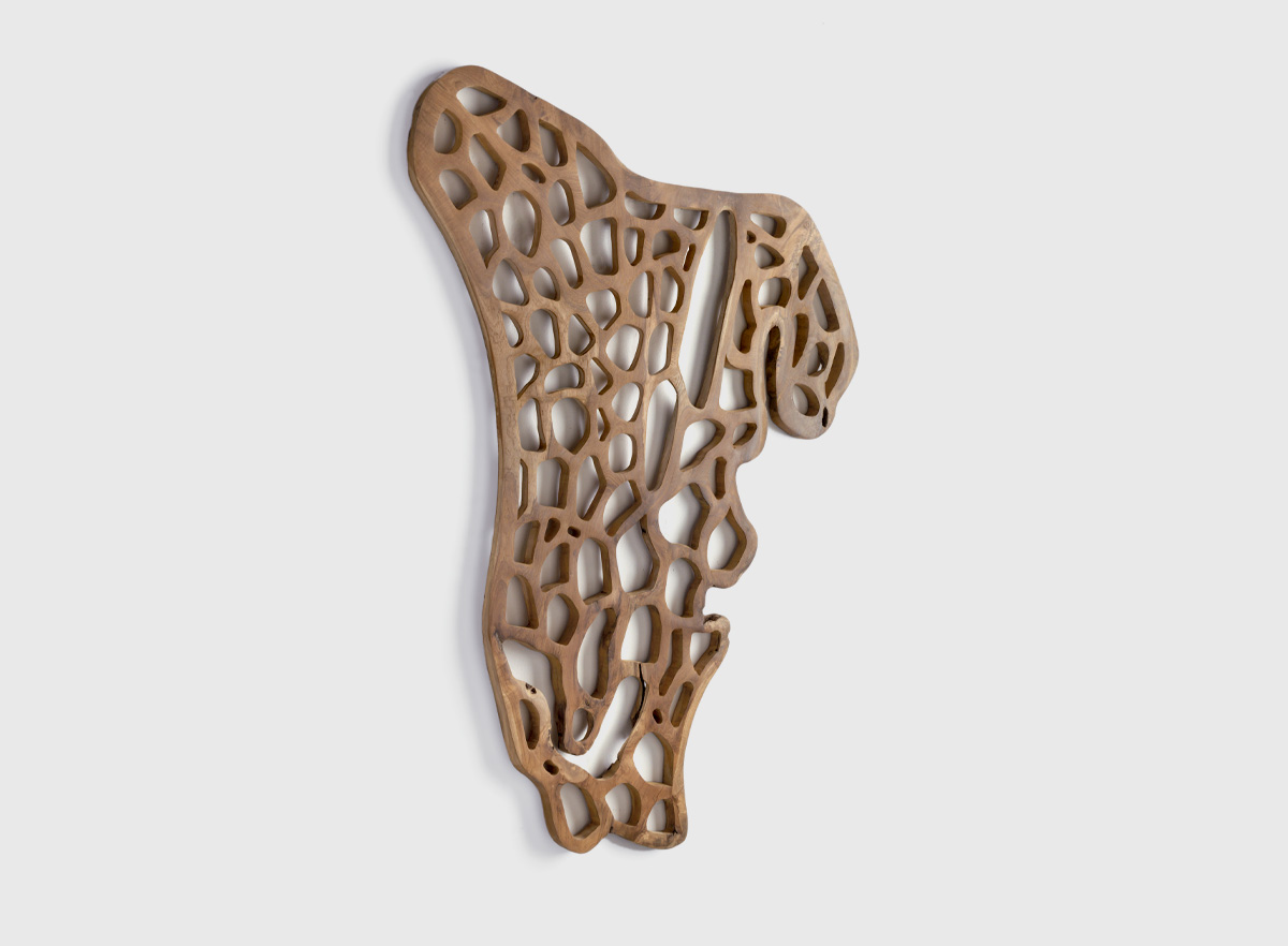 Elaborada en auténtica madera de teca, aporta un toque natural y artesanal a tus espacios. Su acabado único convierte cada pieza en un elemento decorativo irrepetible, ideal para dar calidez, textura y personalidad a la pared.