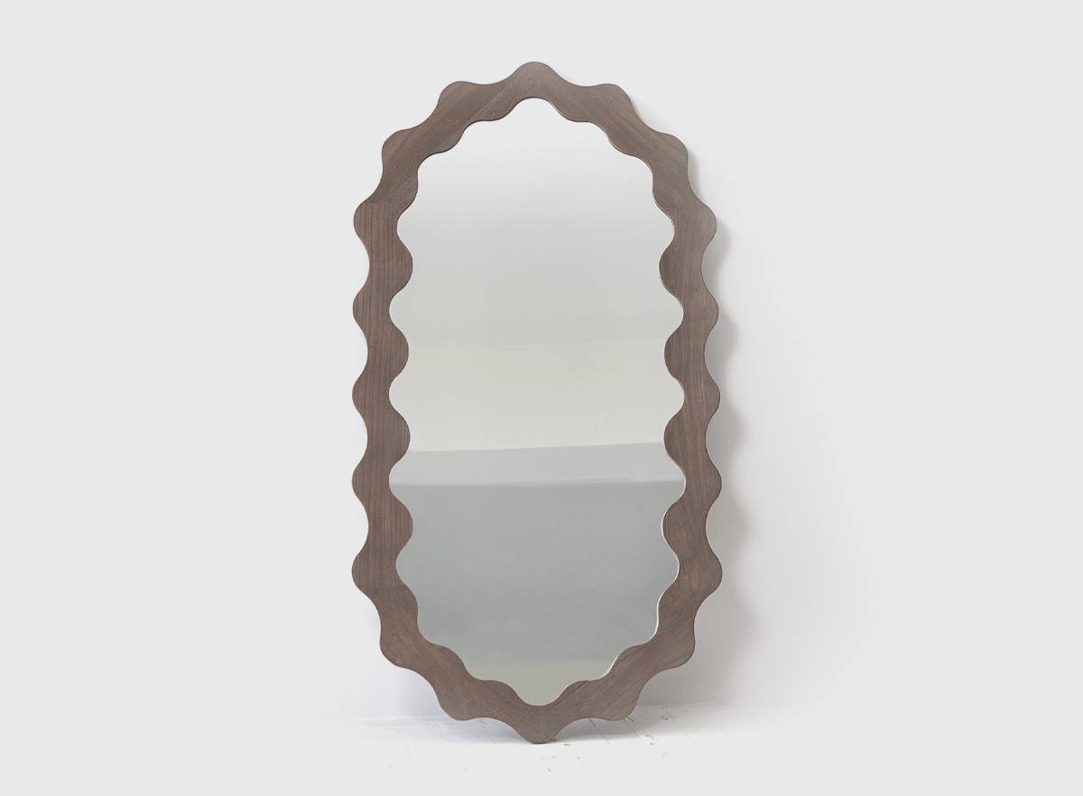 Su diseño ondulado lo hace especial y único, aportando un toque moderno que transforma tus estancias en espacios más amplios y luminosos. Fabricado con una elegante estructura de madera de olmo natural, este espejo no solo es un elemento decorativo, sino también una declaración de estilo.