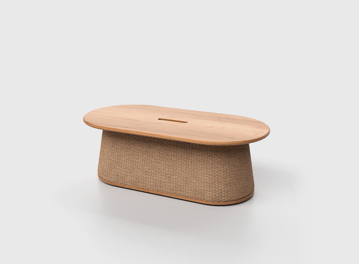 Mesa de centro que combina la naturalidad del teca con una elegante fibra banana trenzada de 20 mm. Esta combinación ofrece un diseño único y sofisticado, ideal para agregar un toque de estilo orgánico y contemporáneo a cualquier espacio.