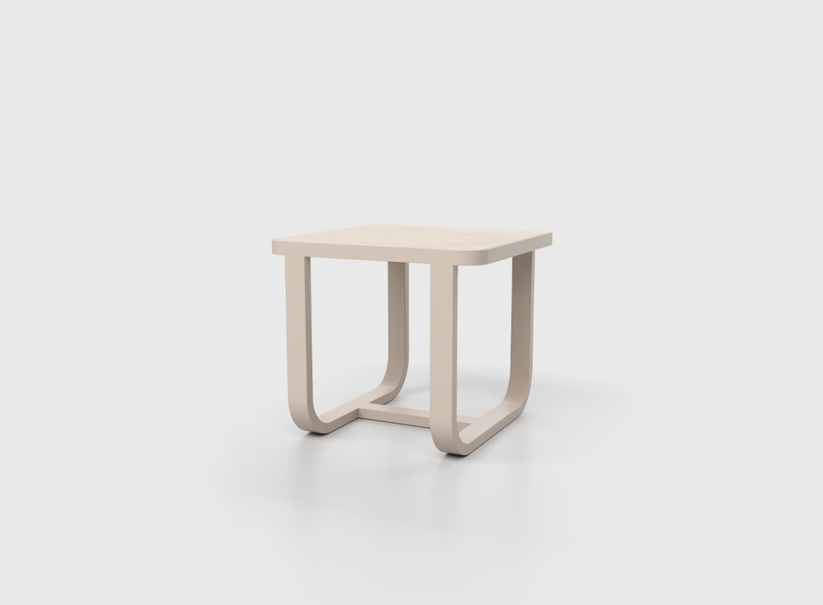 El estilo y la sofisticación se fusionan en la mesa auxiliar Ventus. Esta pieza de diseño, fabricada en aluminio con un elegante acabado white wash, es resistente y robusta, perfecta para uso en exteriores.